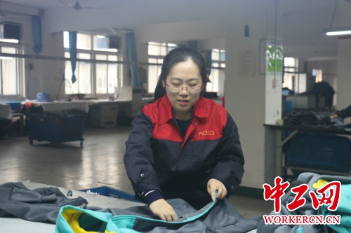 鄞州区总工会宣教部干部翁晓东在叠衣服。中工网记者姚怡梦 摄