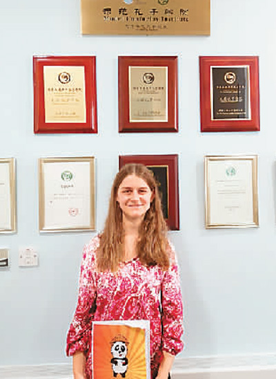 “我想进一步了解中国,更好地和中国同学交流,而不仅仅停留在会用中文说‘你好’‘谢谢’的阶段。家人也很支持我,父母都非常鼓励我学习汉语?!?亚斯敏·斯凯尔顿说?;谟岩甑挠镅灾肿樱谒男睦锷⒀?,也为她的汉语学习之路,源源不断地提供着力量。
