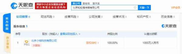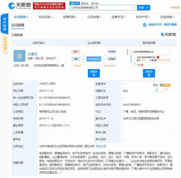中新网客户端11月19日电(记者 吴涛)据天眼查显示,11月12日,滴滴出行的运营主体北京小桔科技有限公司新增对外投资信息,出资1000万人民币,成立北京粒粒橙传媒有限公司,持股比例100%。北京粒粒橙传媒有限公司法定代表人为滴滴市场部负责人王嘉杰,经营范围包括电视剧制作、音像制品制作、电子出版物制作、电影发行等。