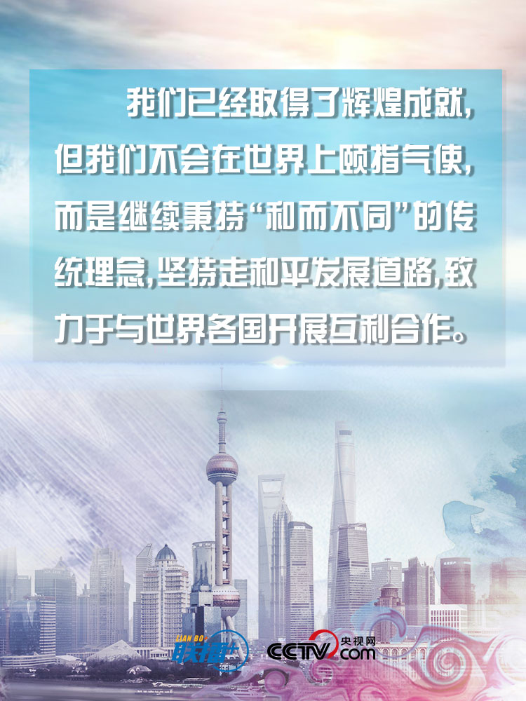 “我们已经取得了辉煌成就,但我们不会在世界上颐指气使,而是继续秉持‘和而不同’的传统理念,坚持走和平发展道路,致力于与世界各国开展互利合作?!?1月22日,习近平主席在人民大会堂会见出席2019年“创新经济论坛”外方代表时掷地有声地说道。