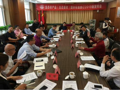2019年5月4日,《生态农产品(生态食材)团体标准2019(修订)版》发布会在国资委商业机关局1号楼会议室召开。该标准是由中国工程院院士印遇龙作为牵头人,由商业饮食服务业发展中心、中国科学院亚热带农业生态研究所、中国农业资源与区划学会、中国地名学会文旅委员会、中咨国业规划设计中心、贵州省有机农业学会、重庆市有机农业产业协会等单位共同起草和发布实施的。会议还对生态养殖、生态饲料、生态农业园区(农场/庄园)团体标准进行了研讨。