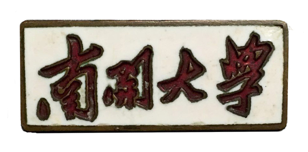 中华人民共和国成立后,南开大学制发了矩形?;?,单色背景,镌有毛泽东题字的“南开大学”校名。此种校徽有多种款式,早期文字多为红色,背景色根据不同身份有所区分,有白、红、蓝、黄、绿等不同颜色,如红字白底、白字红底、白字黑底等等,并有椭圆形?;?,比较独特。图2为上世纪五六十年代南开大学?;?。