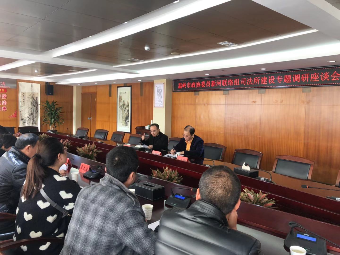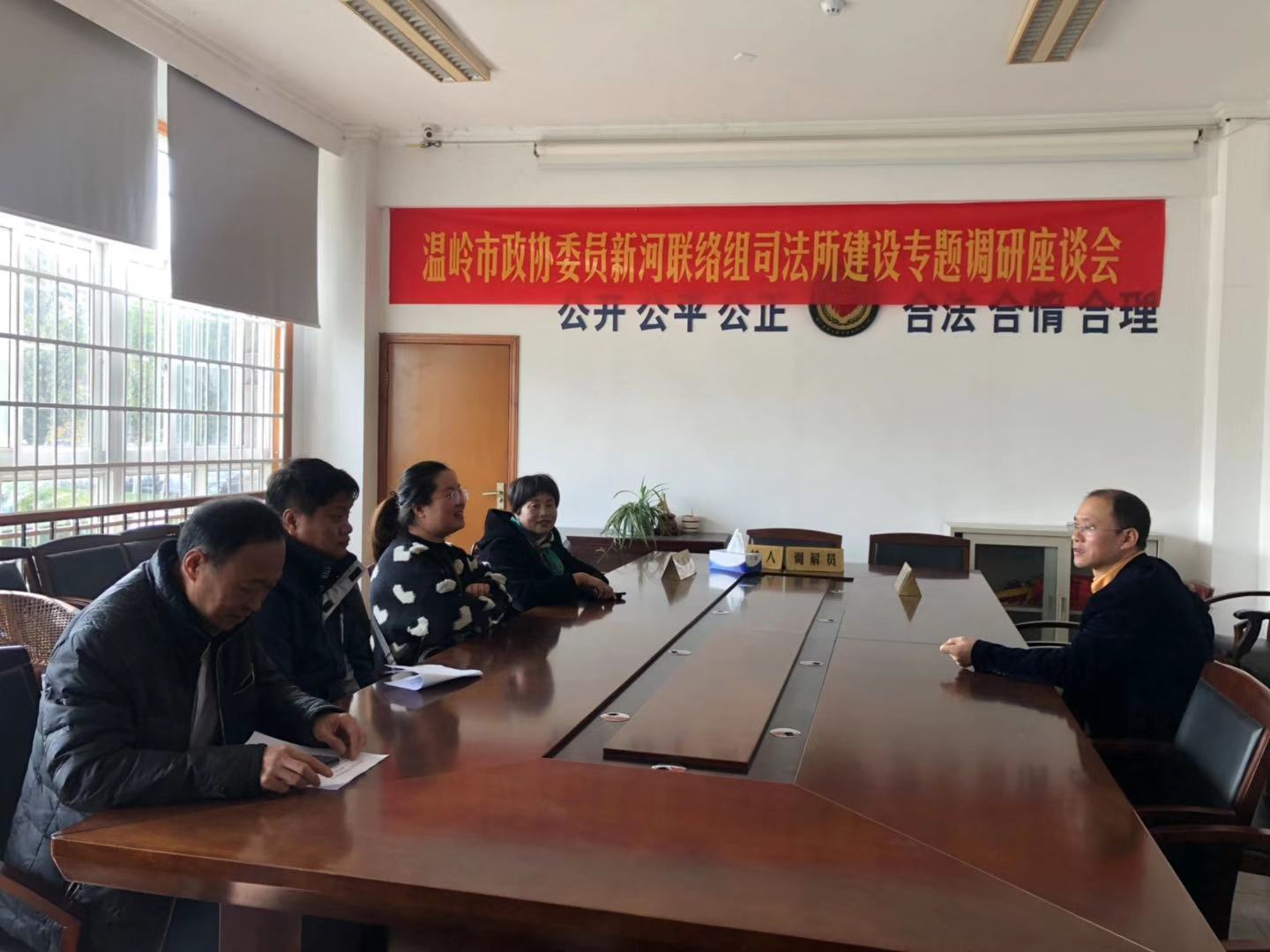 浙江省温岭市新河镇政协委员调研司法所工作