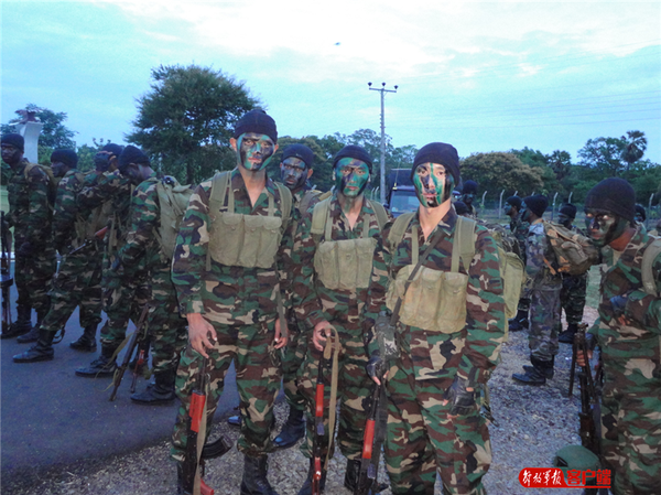 演习结束后与国旗分享胜利喜悦(前排左一)