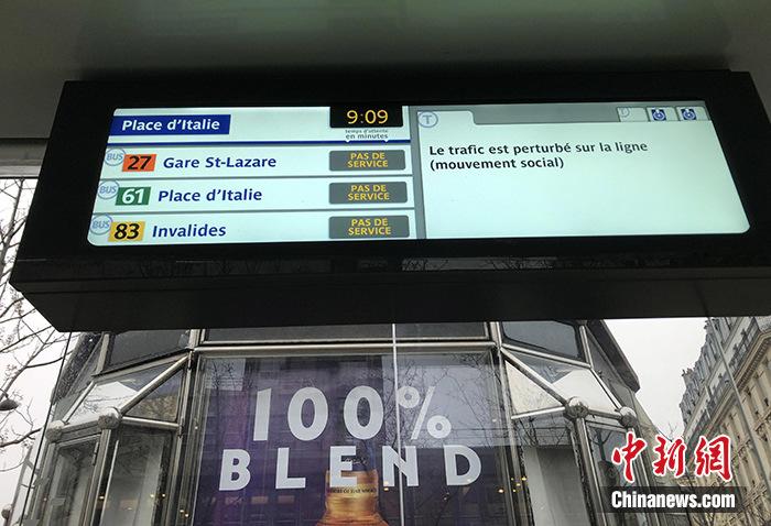 当地时间12月5日,法国1995年以来最大规模罢工如期而至,国家由此面临瘫痪。中新社记者在巴黎市中心看到,公共交通系统几乎全部停止服务。在不少地铁站和公交车站都可以看到“线路停止运营”的指示牌。中新社记者 李洋 摄