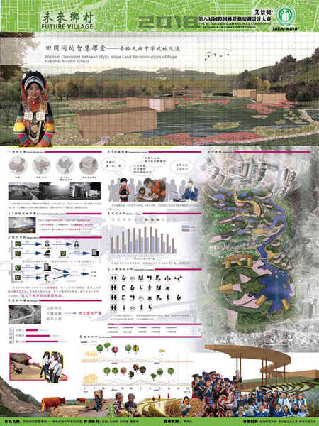 从设计背景到解决方案,再到梯田、田间教室的设计,袁畅和其团队的作品严谨、完整,富有创新性,获得了2018年艾景奖学生组铜奖和2019年米兰设计周一等奖,并在米兰理工大学展览。