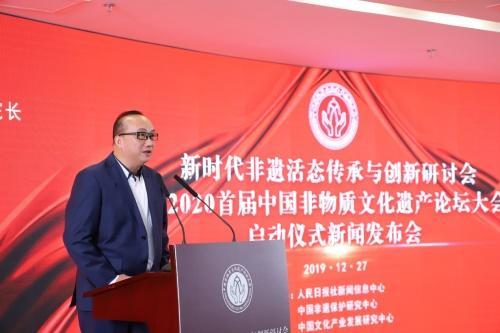 人民政协网北京12月31日电 为纪念《中华人民共和国非物质文化遗产法》颁布九周年,促进非遗文化在新时代的新发展,由人民日报社新闻信息中心、中国非遗?;ぱ芯恐行?、中国文化产业发展研究中心、宜兴市人民政府共同主办的“新时代非遗活态传承与创新研讨会暨2020首届中国非物质文化遗产论坛大会”启动仪式新闻发布会于2019年12月27日在人民日报社举行。