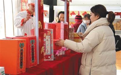昨日,北京稻香村东直门营业部,顾客挑选“细八件”礼盒。新京报记者 陈琳 摄