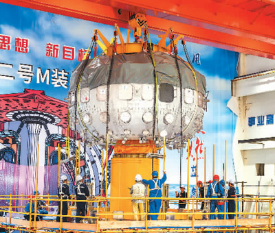 1 中国环流器二号M装置真空室吊装。