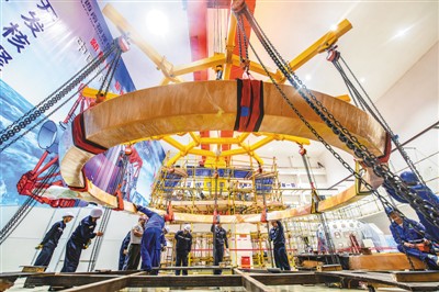 中国环流器二号M装置真空室吊装。范 晋摄