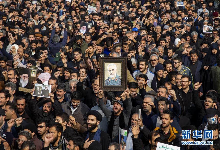 1月3日,在伊朗德黑兰,人们参加游行抗议伊朗伊斯兰革命卫队下属“圣城旅”指挥官卡西姆·苏莱马尼被炸身亡。 苏莱马尼当天在美国对伊拉克首都巴格达国际机场发起的一场火箭弹袭击中身亡。伊朗多名高官随后警告将对美国进行报复。 新华社发(艾哈迈德·哈拉比萨斯摄)