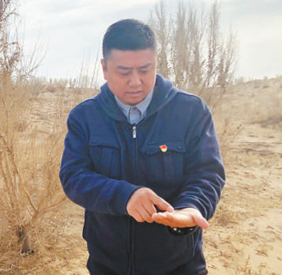 贾其煜向记者展示梭梭树种子。记者 付文摄