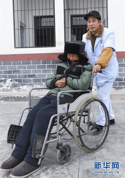2019年12月27日,重庆奉节县草堂镇失能供养中心的工作人员用轮椅推着失能人员到室外活动。新华社记者王全超摄