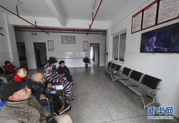 2019年12月27日,失能人员在重庆奉节县草堂镇失能供养中心看电视。新华社记者王全超摄
