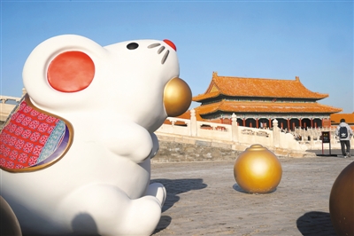 藏文化瑞兽“吐宝鼠”亮相故宫太和门广场。刘静/人民视觉
