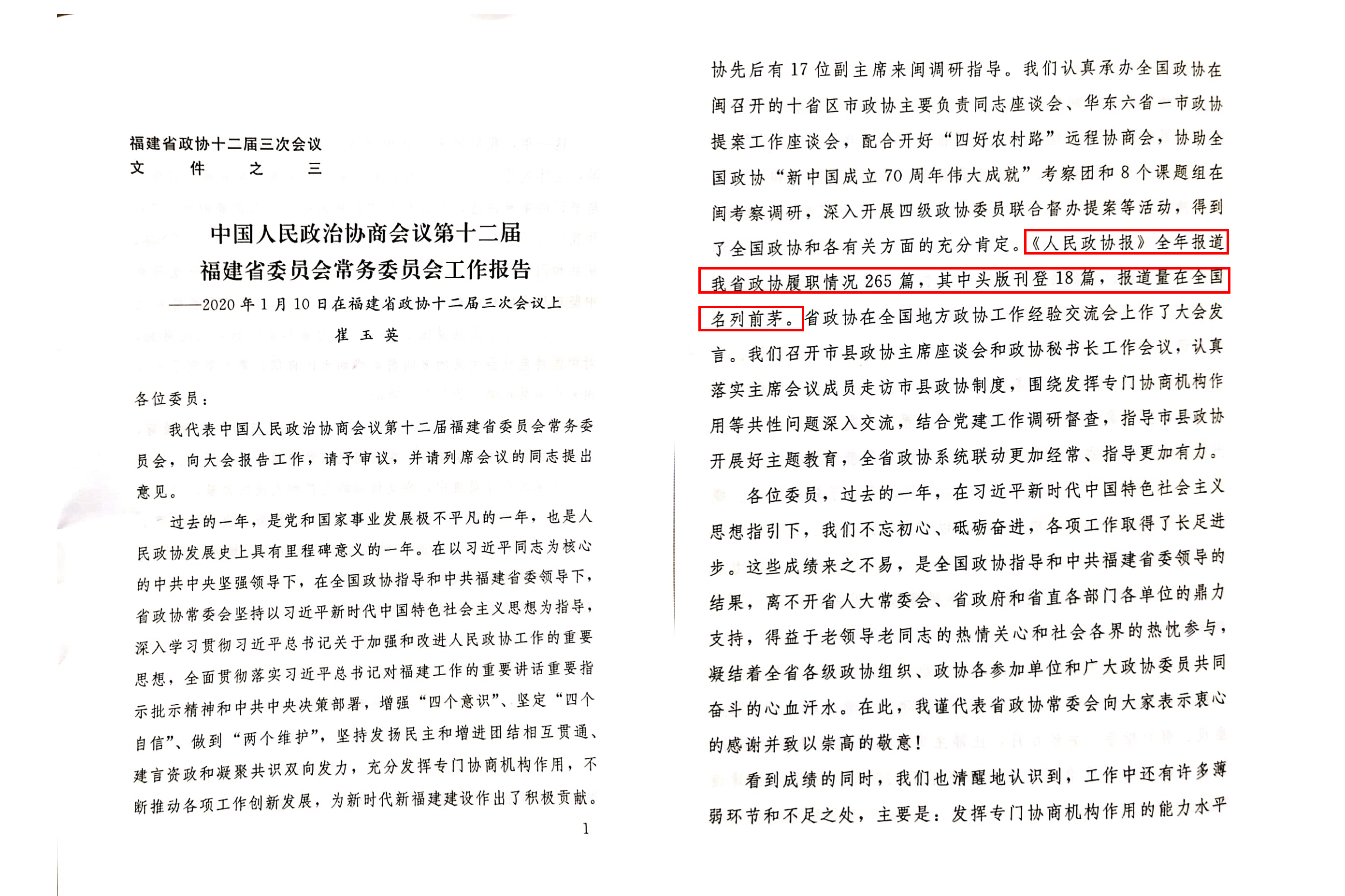 福建省政协十二届三次会议开幕——人民政协报“登上”常委会工作报告