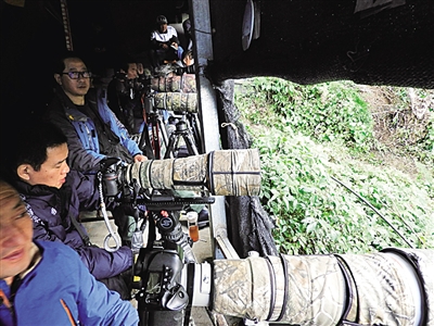 正在鸟塘拍摄鸟类的摄影师们 。任维东摄/光明图片