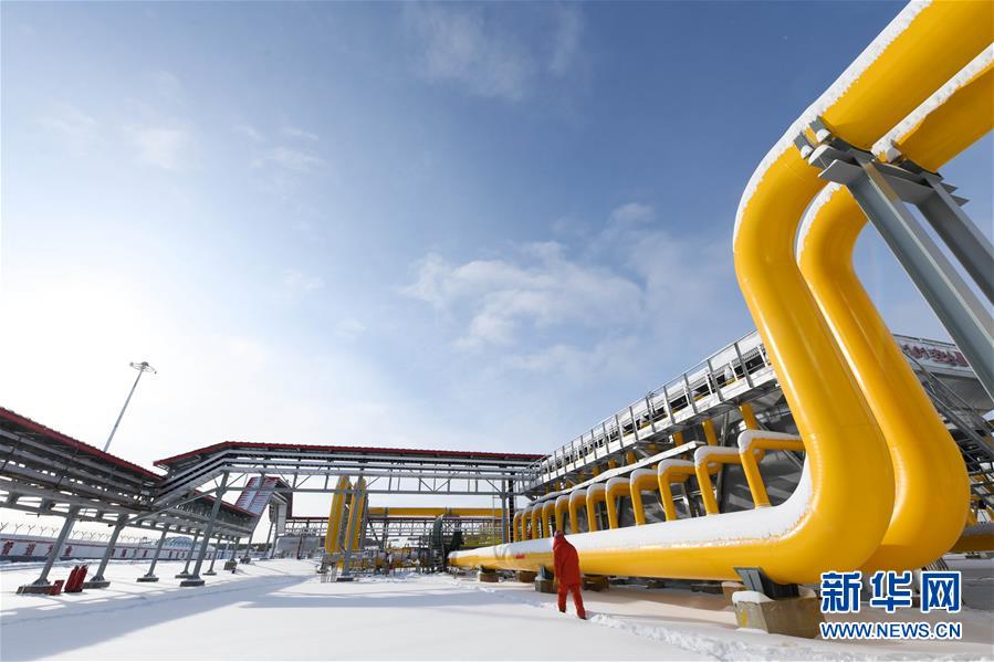 在中俄东线天然气管道北段黑河首站场区,工作人员从管线旁经过(2019年11月19日摄)。 新华社记者 王建威 摄