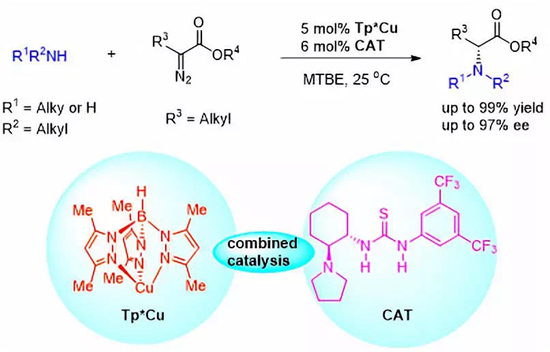 协同催化卡宾高对映选择性插入脂肪胺N-H键合成手性氨基酸。南开大学供图