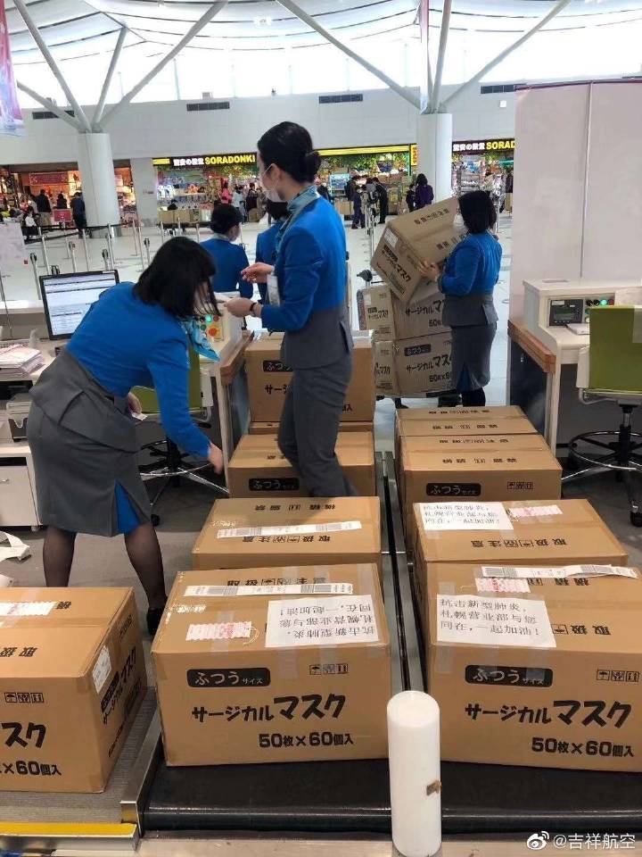图为上海均瑶(集团)有限公司旗下吉祥航空从国外采购的救灾物资抵达国内。