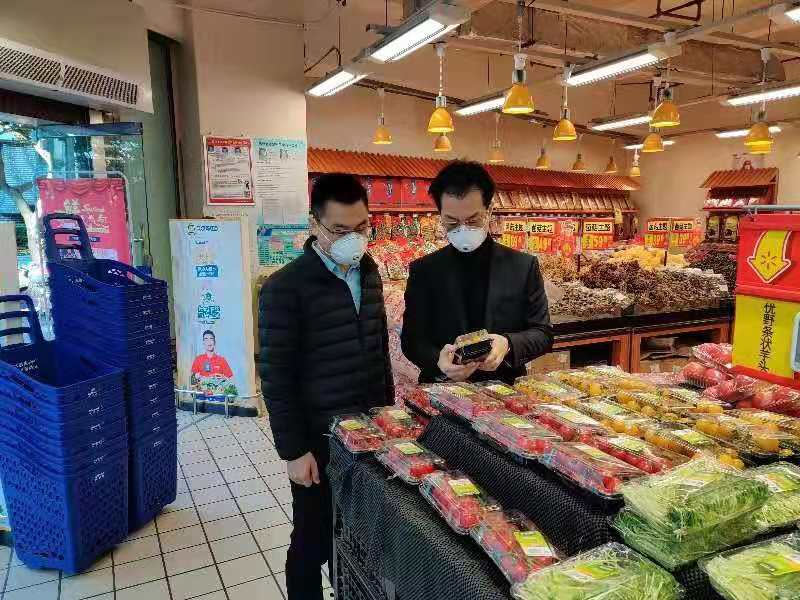 商务局工作人员每天详细了解区内12家永辉超市、11家永辉mini、15家永辉生活、4家沃尔玛(含山姆)、1家盒码鲜生超市的货品运营情况,及时掌握粮、油、肉、菜等基本生活物资情况。