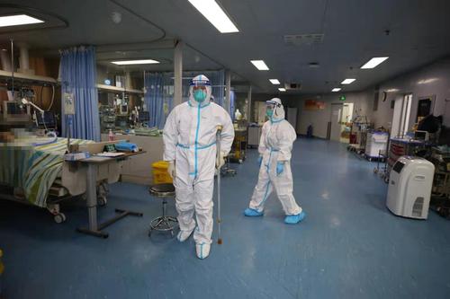 “双拐医生”饶歆有两根拐:一根在隔离病房,上班用;一根在病房外,下班用。1月初,饶歆左脚严重崴伤,同事诊断后的建议是休养两周??山龉?天,饶歆就拄着拐与另外5位同事走进了重症隔离病房,“实在缺人,我还是病区的负责人。”