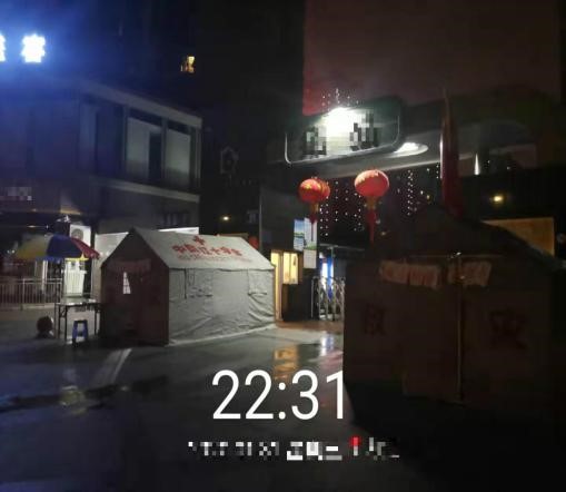 小区门口监测点帐篷中的灯光,让人感觉格外温暖