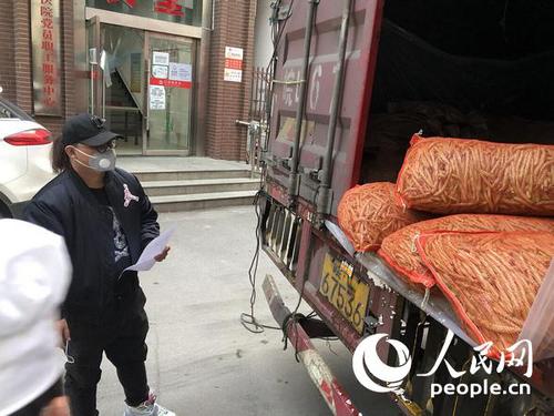 徐敬阳联系对接的蔬菜运抵武汉市第四医院食堂。人民网湖北频道金雨蒙 摄