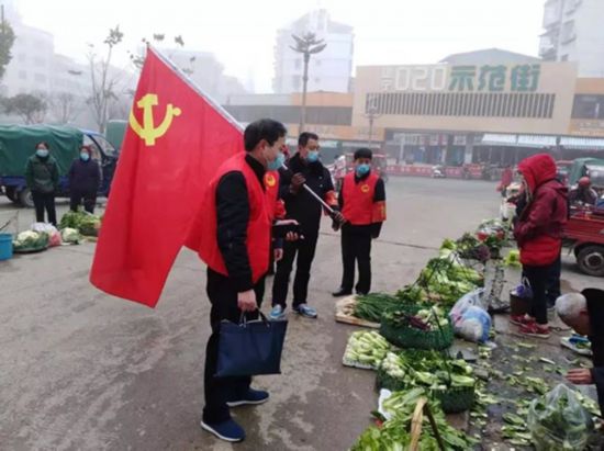 耐心劝导一位在农贸市场摆摊的老婆婆