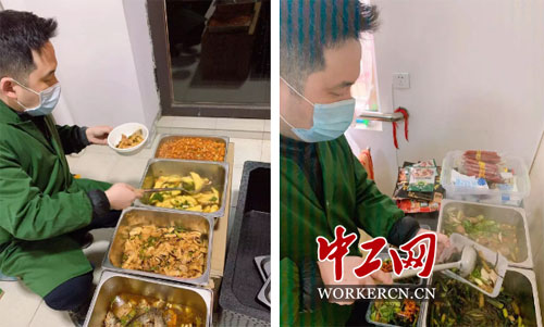 吴博为在外执勤的同事们打菜