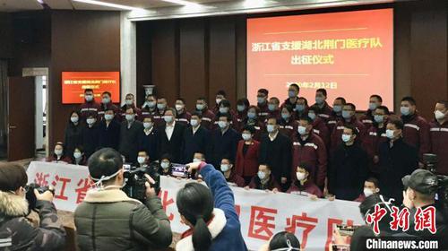 12日,浙江省支援湖北荆门医疗队出征仪式在杭州举行。根据国家卫生健康委对口支援湖北省除武汉以外地市新冠肺炎防治工作部署要求,浙江省和内蒙古自治区将共同支援湖北荆门。