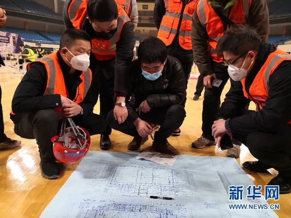 中国一冶党员突击队第一时间在“方舱医院”展开实地测量