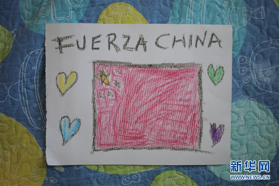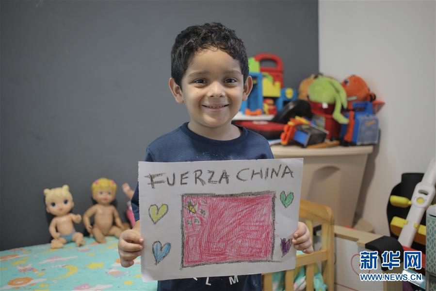 2月10日,在巴拿马首都巴拿马城,5岁儿童马特奥·巴伦苏埃拉作画表达对中国的支持?;行醋牛杭佑椭泄?中国和拉丁美洲虽然距离遥远,但民心相通,当地民众关注着中国抗击新冠肺炎疫情的消息。在一些国家,孩子们拿起画笔,描绘出他们对中国的支持和鼓励,送上了远方的真挚祝福。 新华社发(毛里西奥·巴伦苏埃拉 摄)