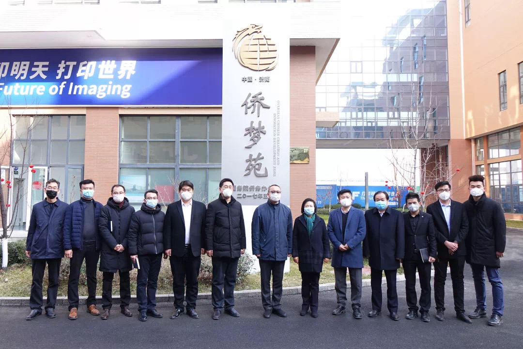 2月12日上午,济南市委常委、统战部部长王拥华(右六)率队到当地侨资企业走访督导疫情防控和复工复产工作,右七为施乾平。