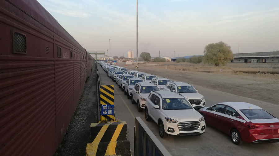 天津货运中心公转铁运输商品车。摄影王振兴 (1)