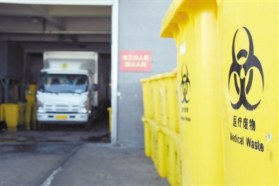 标记着“医疗废物”字样的医疗废物收运桶新华社记者 张晓龙摄