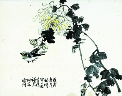 1938年,陈玲娟随家人逃难至重庆。一天,她偶然得知中央大学艺术系在当地招生,抱着试试看的心情来到考场。陈玲娟现场画了墨菊,张书旂教授随即在下方补鸟,并题款:“戊寅冬月,玲娟写菊,书旂补鸟,时客渝州?!?/p>