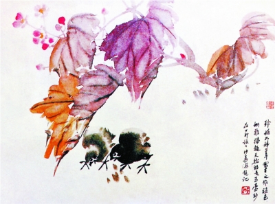 后来,陈玲娟委托儿子给家乡送去她的两幅作品,以寄托思乡之情。其中一幅画的是,一只母鸡站在开满野菊花的篱笆旁,生动传神。陈玲娟说:“我画的是家乡的鸡。一般画公鸡比较多,但母鸡比公鸡难画?!痹谒亩奔且渲校蚁缬腥饔∠笞钌睿合愦?、杨梅,还有野菊花。