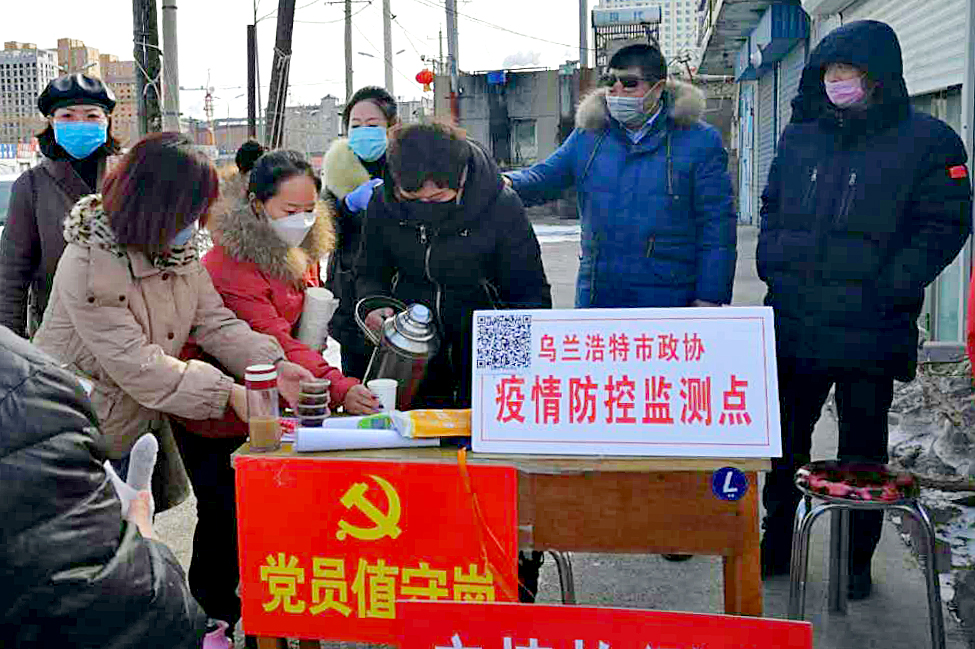 内蒙古乌兰浩特市政协委员执勤点,政协志愿者在一线值守。