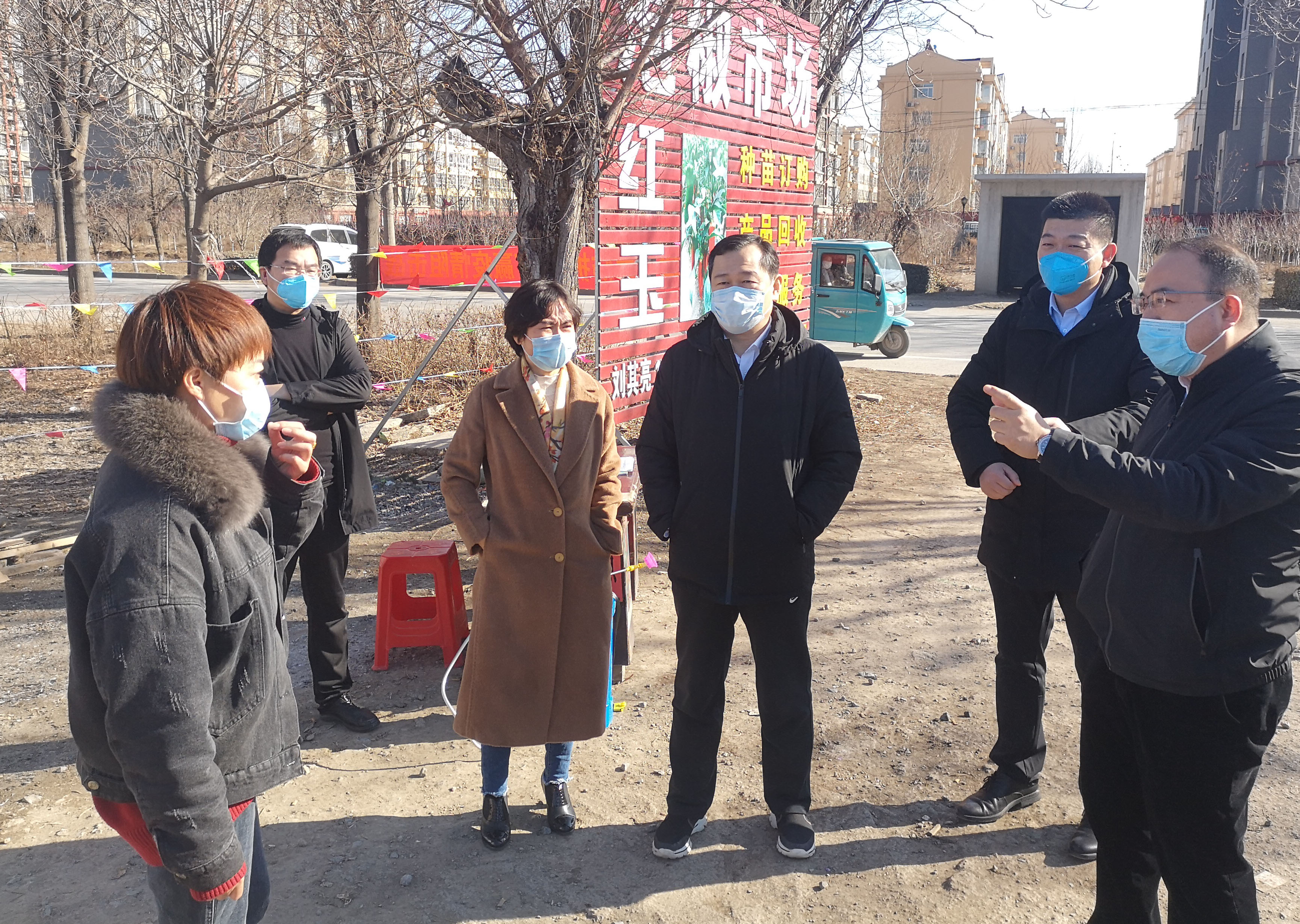 寿光市政协主席武治强(右三)在古城街道督导防疫情况。