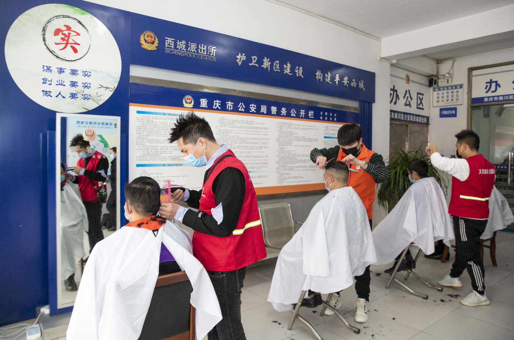 随着专业美发师挥动剪子奏出“咔嚓咔嚓”的优美旋律,重庆市大足区公安分局的300多位一线民警精神抖擞地再次出现在抗“疫”一线。