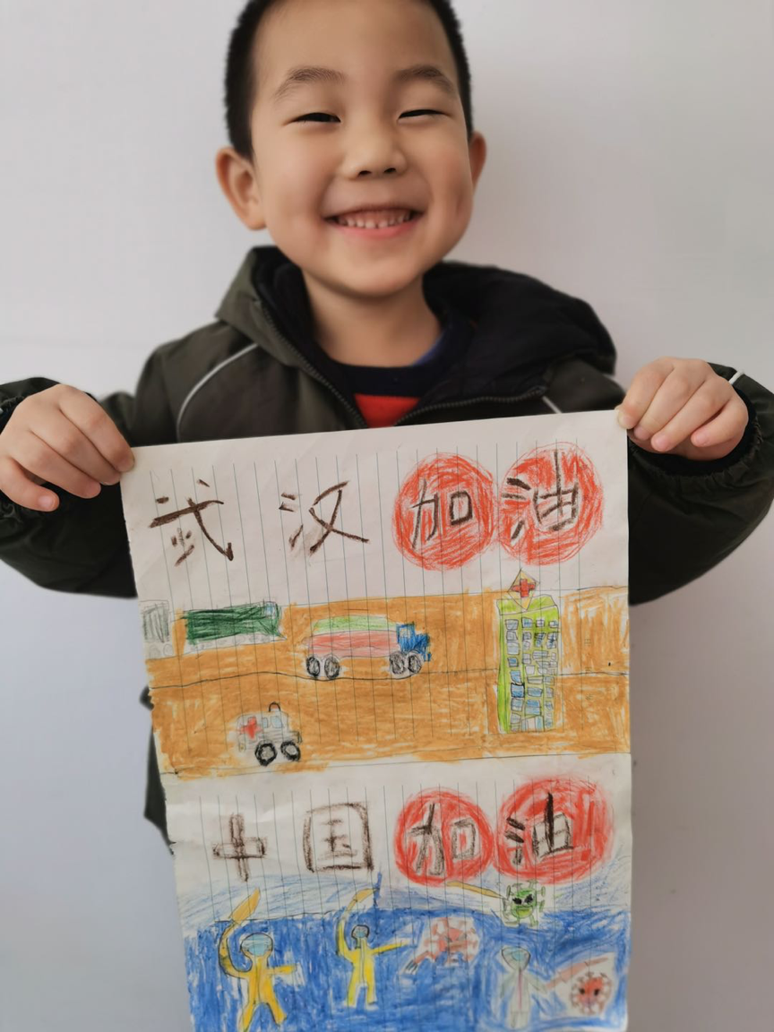 大班小朋友用美丽的画笔向武汉人民献爱心