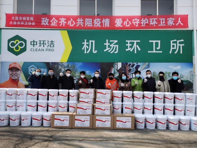 2月18日,大连市城管局、大连市环卫协会、中环洁环境有限公司共同举行“政企齐心共阻疫情,爱心守护环卫家人”防疫物资捐赠仪式,由市内四区环境卫生主管部门代表现场领取,随后分发到各区环卫工人手中。