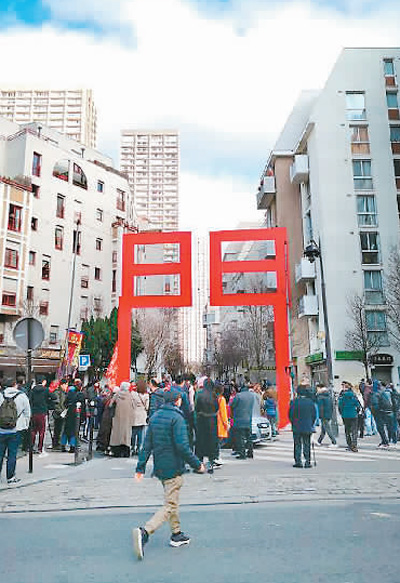 在巴黎十三区可看到一座地标式的汉字建筑,是以繁体“門”字为造型的“中式牌坊”——三维立体的红色“博爱门”。汉字+建筑+艺术设计的“博爱门”也许会请进艺术设计的教科书。