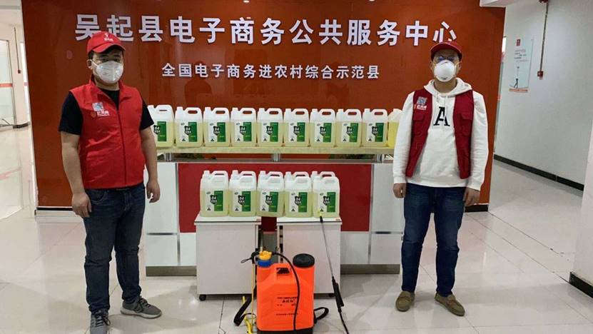 在疫情期间社员网主动请战,主动承接吴起县电子商务运营中心全面消毒工作。并捐赠2000余元消毒物资。为保障疫情期间吴起县电子商务运营中心安全放心运营!