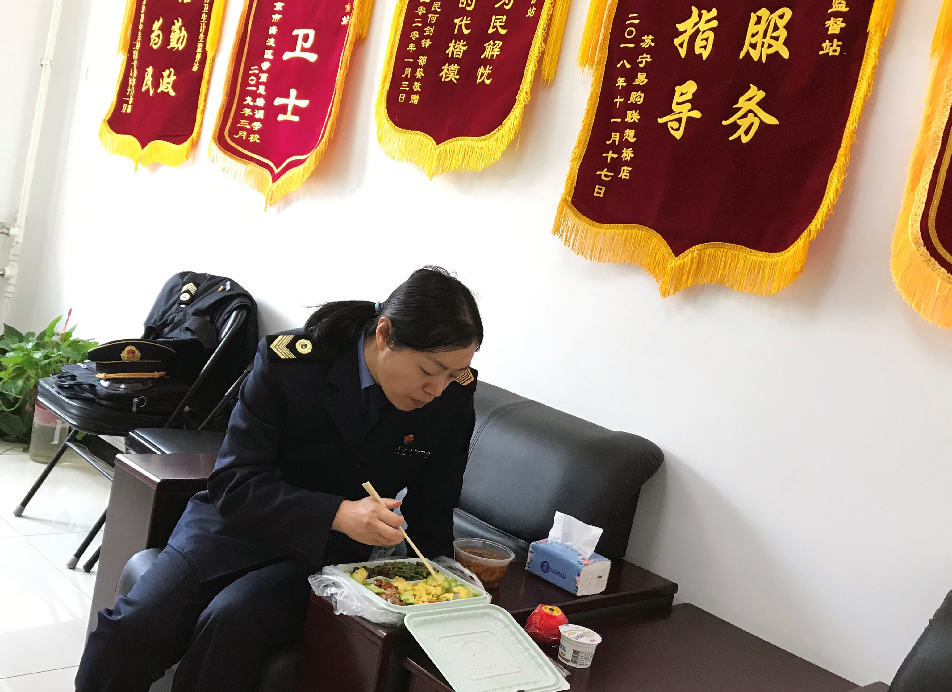14:00-14:30 “面对疫情防控,作为一名共产党员,我没有问题,不需要休息?!闭馐堑悦缑缍酝滤倒疃嗟囊痪浠?。经过了上午紧张的工作后,翟苗苗抓紧时间吃午餐。