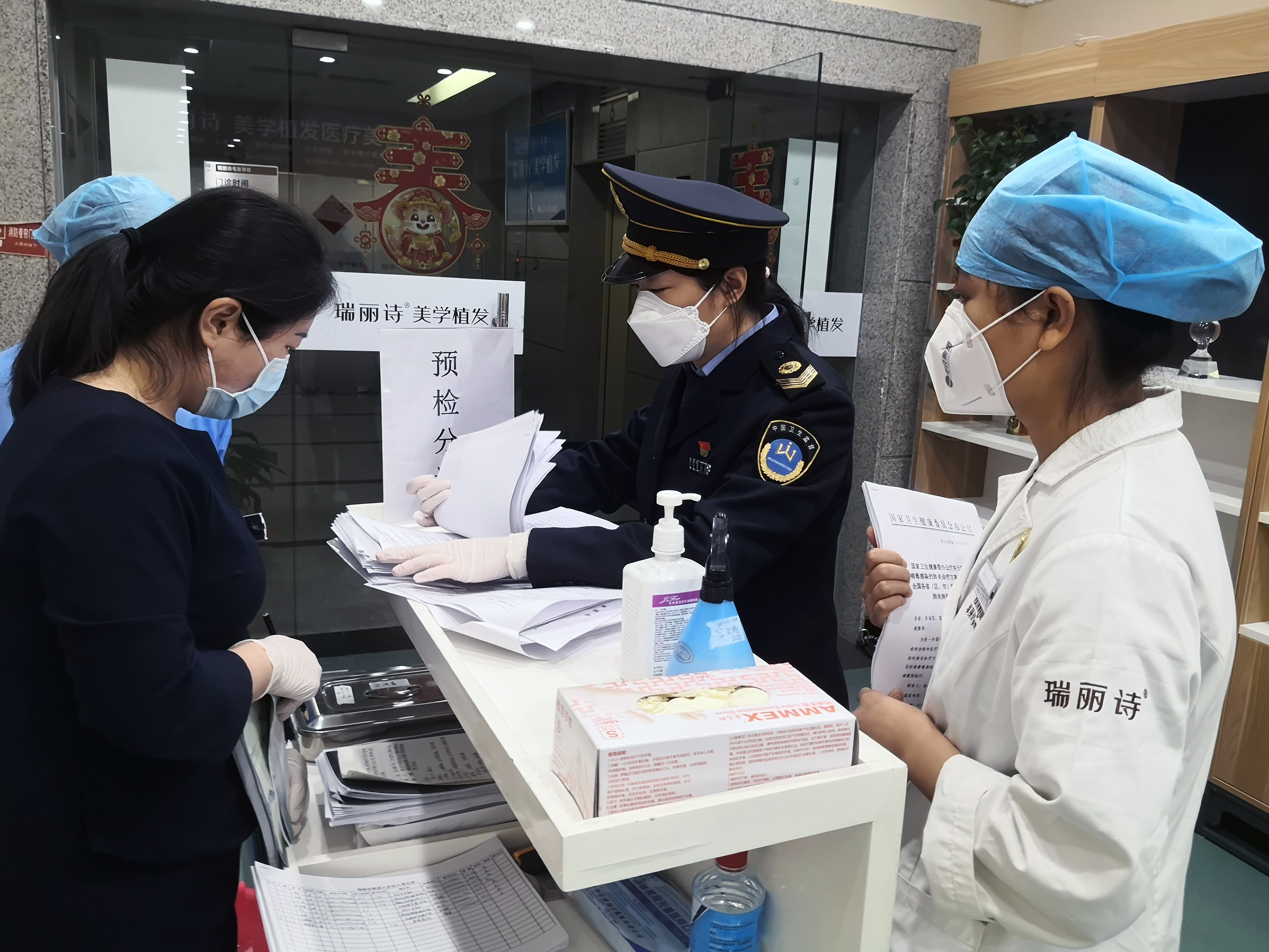 图片说明:防控专项监督检查,指导节后开工的美容美发单位做好复工防控。