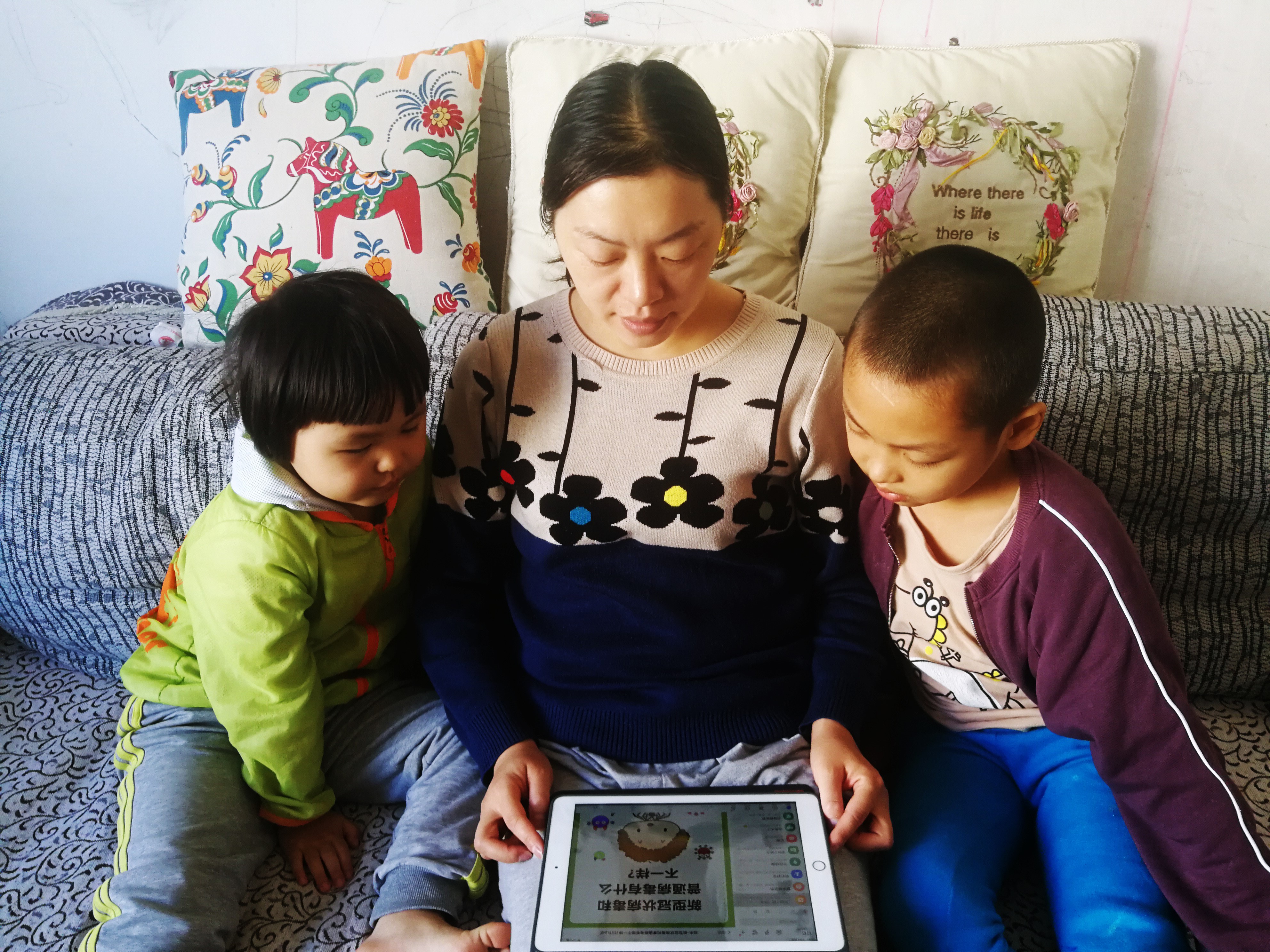 图片说明:结束了一天的工作,坐下来给两个孩子讲讲妈妈在和新冠肺炎战斗的故事。