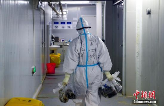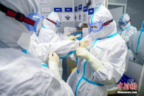 资料图:火神山医院感染二科一病区医护人员穿好防护服准备进入隔离病房。中新社记者 张畅 摄