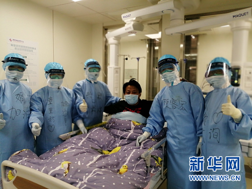 还有位48岁大哥也要转入普通病房了。刚进来时,因为血氧饱和度很低,他一度想放弃治疗。没想到经过我们的精心治疗,这两天已恢复过来,大半夜非要拉着我们合影留恋。他说:“希望留个纪念,以后出院了要回来和我们喝一场庆功酒。努力!加油!我爱中国!” 这样的话,真的很暖心。